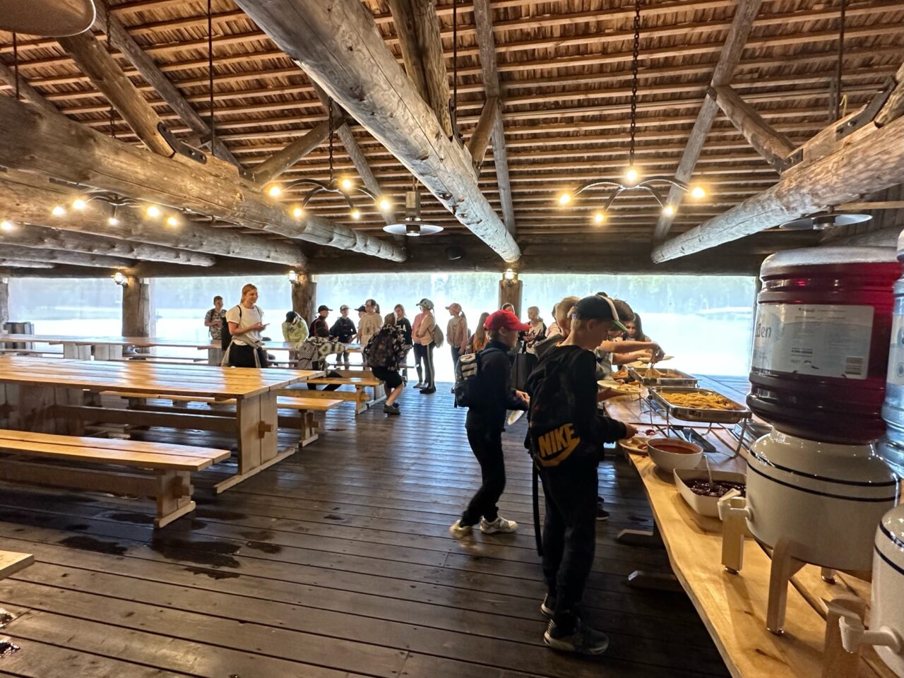 Kohale jõudes kostitati meid mõnusate pannkookide ja maasikamoosiga. Kõhud täis, asusime põnevale matkarajale, kus ootasid ees eriilmelised ülesanded.