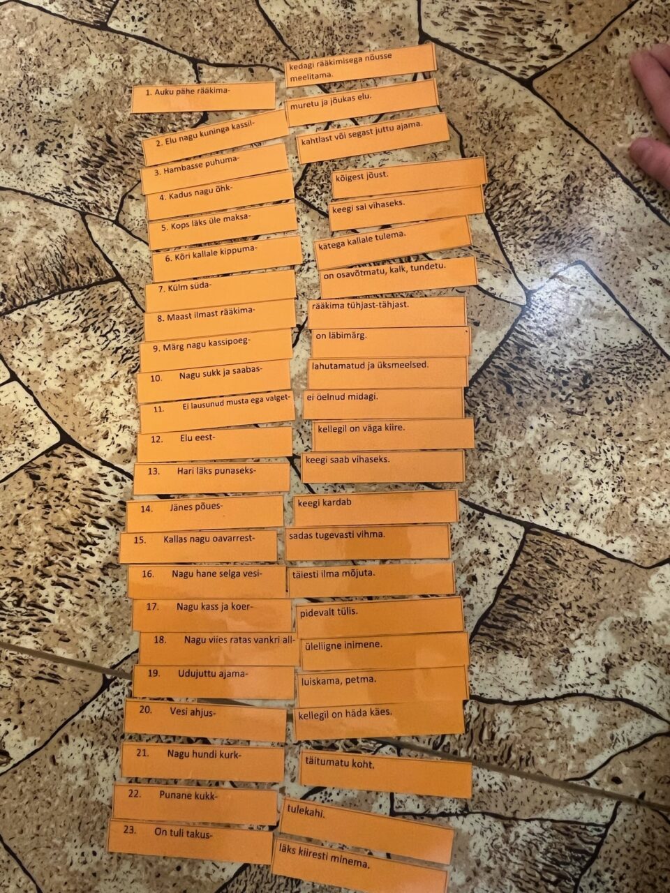 Õpilaste ülesandeks oli leida 23-le kõnekäänule võimalikult kiiresti õiged vasted.
