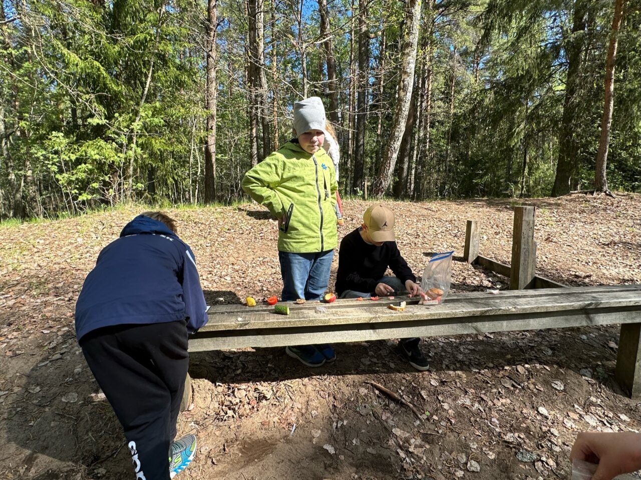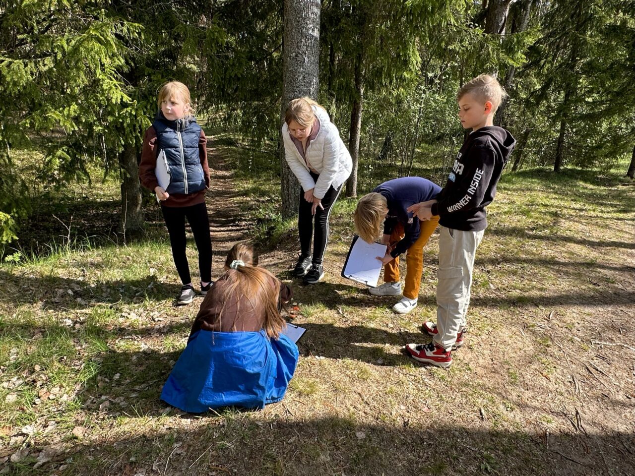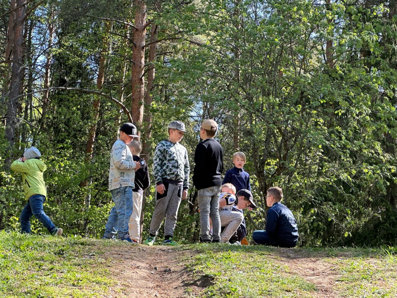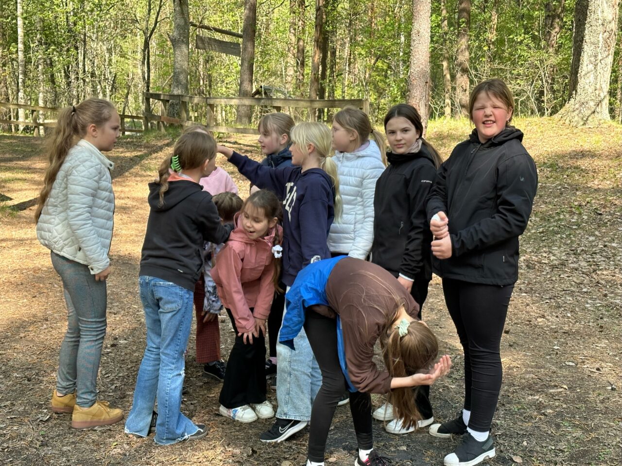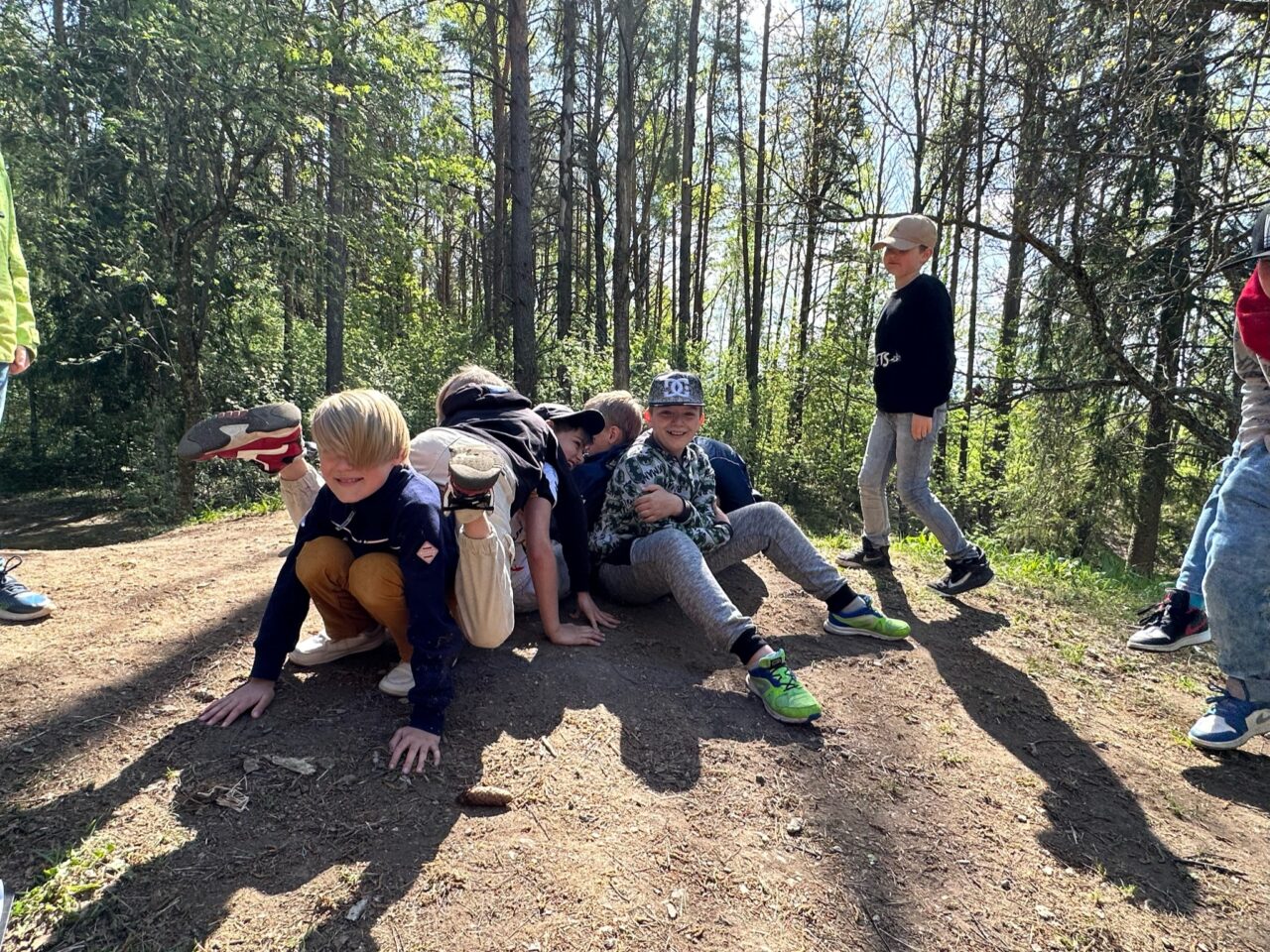 Õuesõppetunni lõpetuseks valmisid nii tüdrukutel kui ka poistel inimekehadest moodustunud sipelgad.
