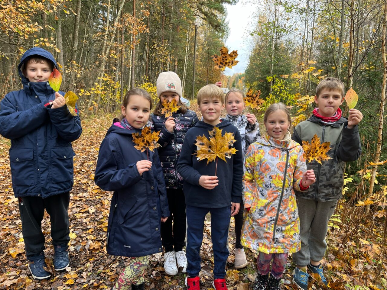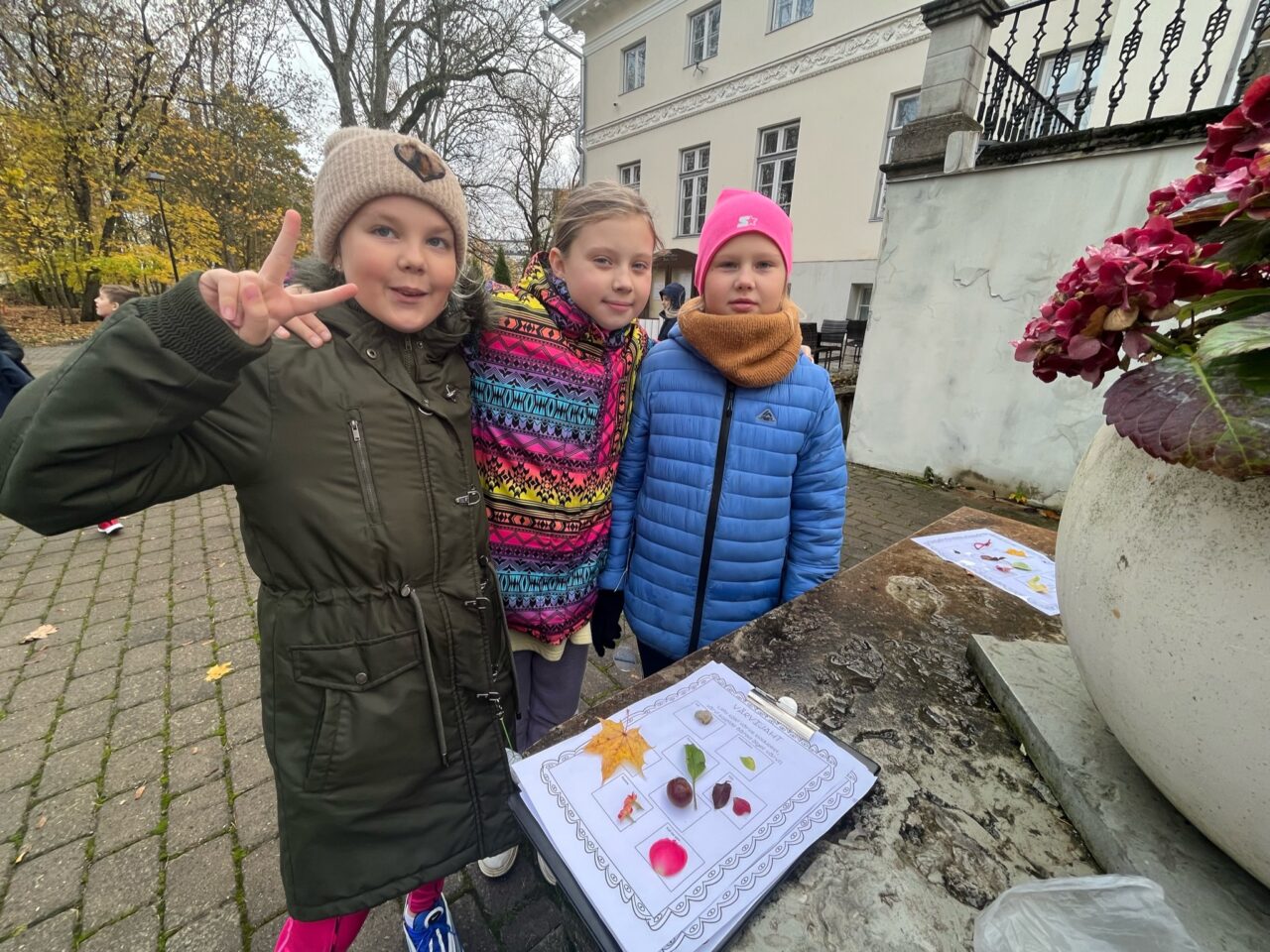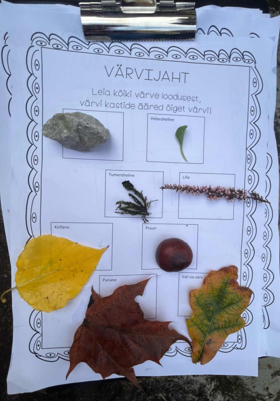 Nii uurisime rühmatööna Saku mõisa pargis olevaid vahtralehti. Lisaks pidasime maha põneva värvijahi, kus loodusest tuli leida erinevaid värve.