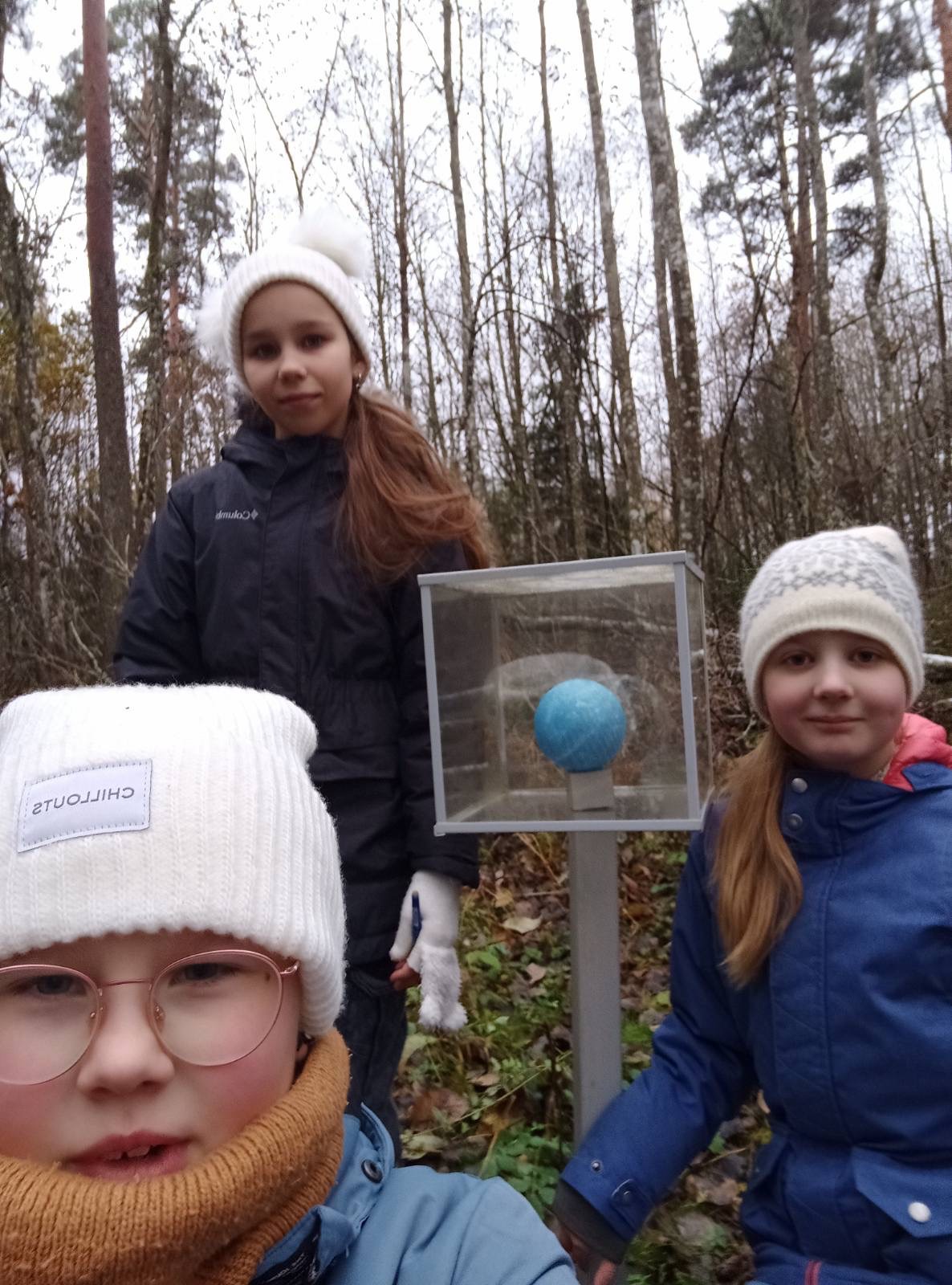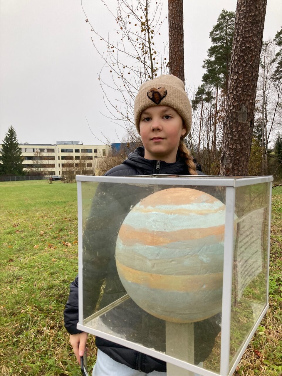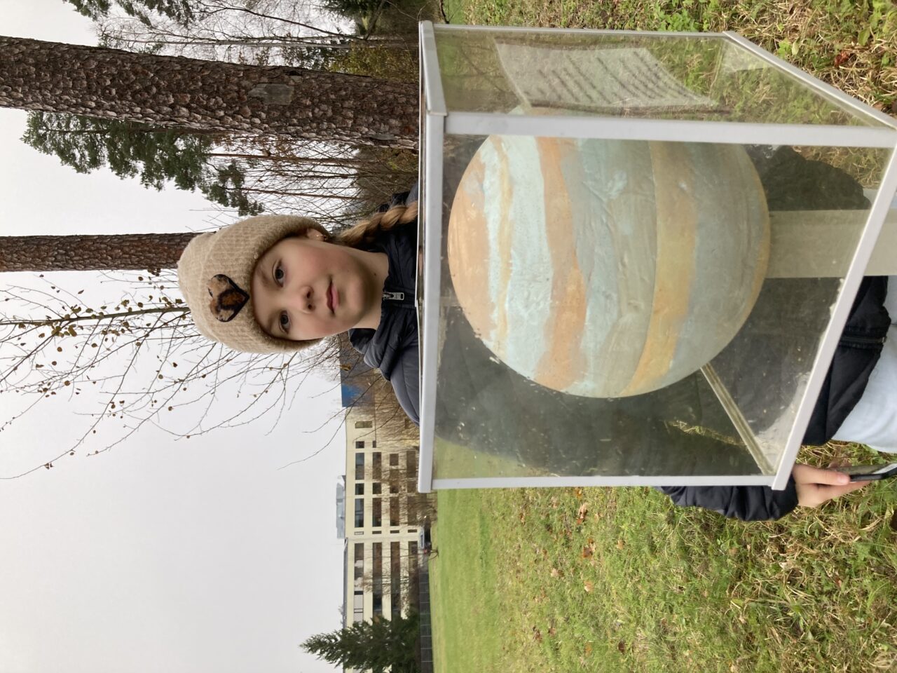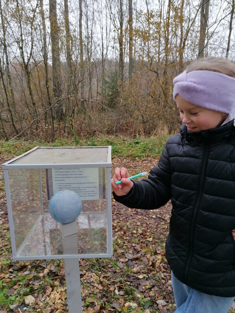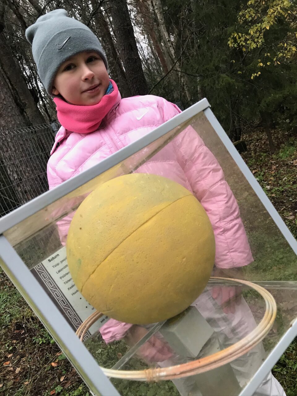 Planeetide teema lõpetasime üheskoos õuesõppe tunniga. Paaristööna tuli läbida planeetide õpperada, mis algas Päikese juurest ning lõppes 850 meetri kaugusel Neptuuniga. Iga planeedi mudel oli paigutatud pleksiklaasist kuupi ja sellelt sai leida planeeti tutvustavat informatsiooni.