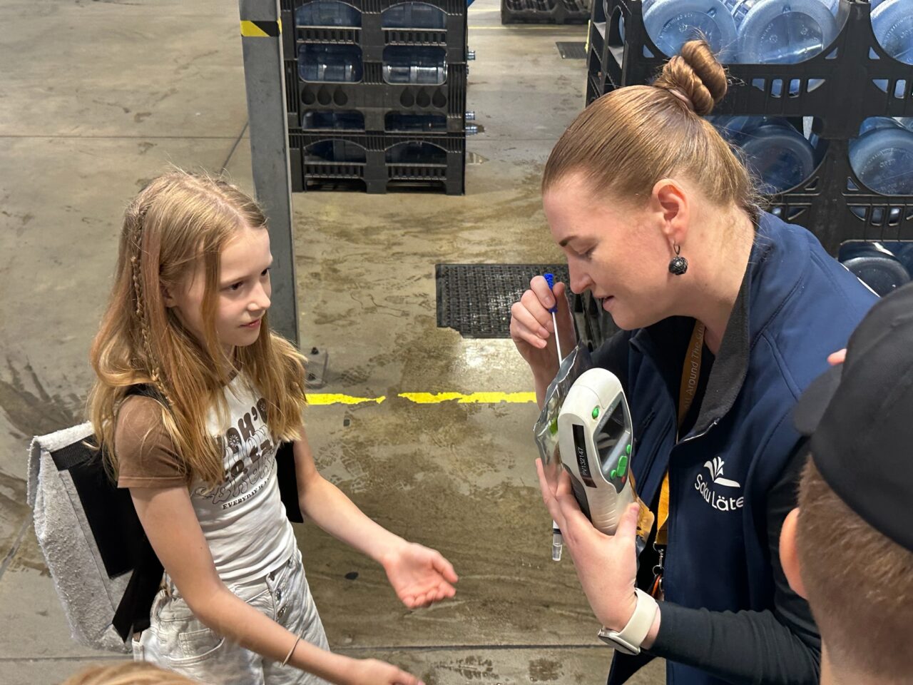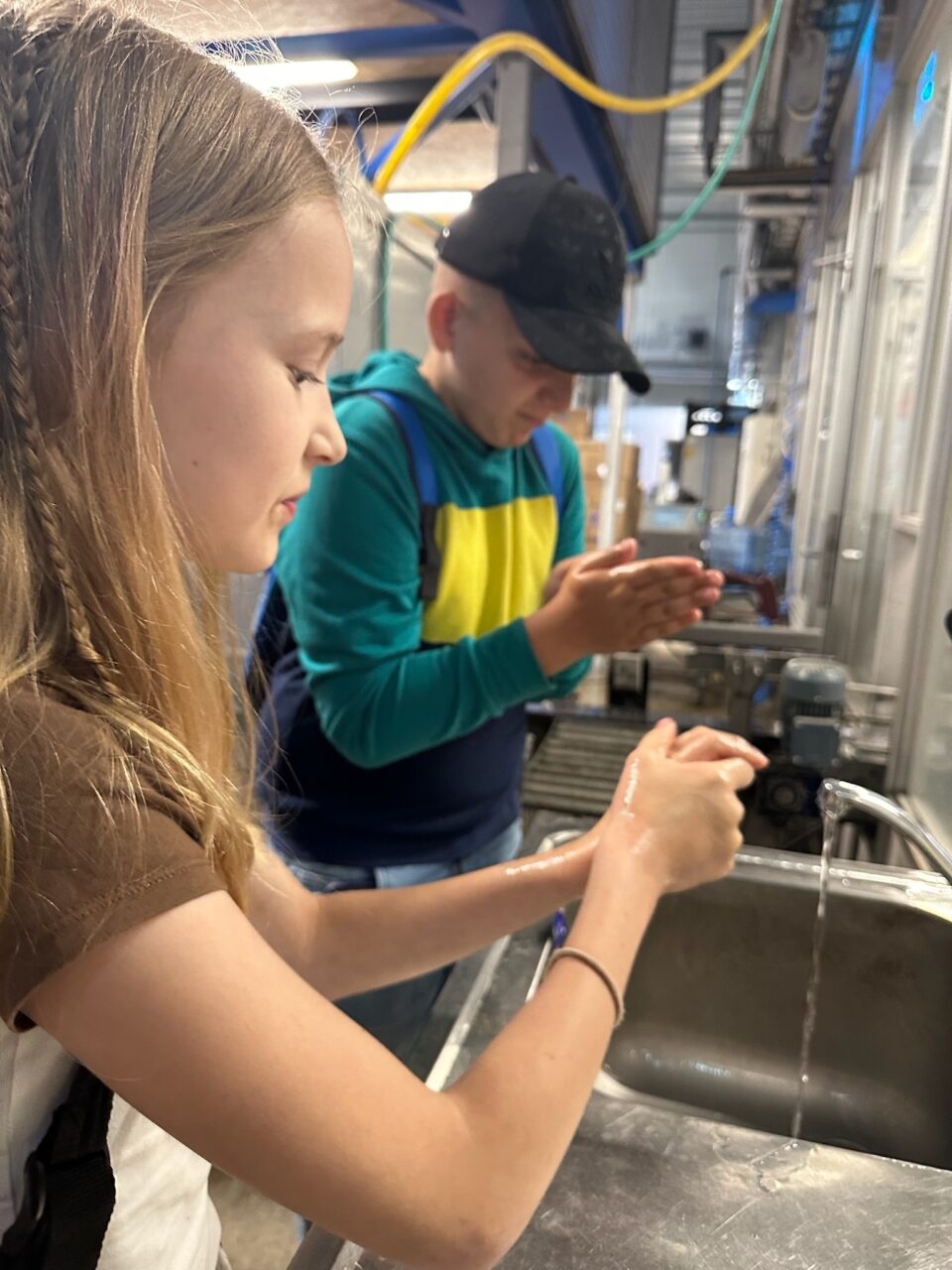 Saku Läte joogivesi on puhta maitsega looduslik põhjavesi. Meil õnnestus käia pumbamajas ja tootmishoones ning koos väga toreda giidiga kogu protsessi ka kohapeal jälgida. Lisaks uurisime vastava seadme abil Minni ja Grigory kätelt bakterite hulka. Oli väga põnev ja inspireeriv külastus.