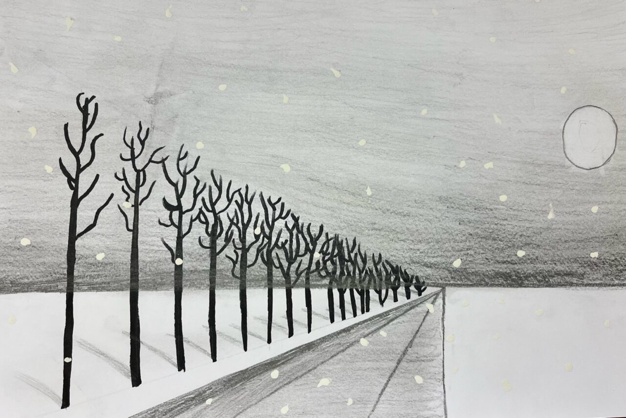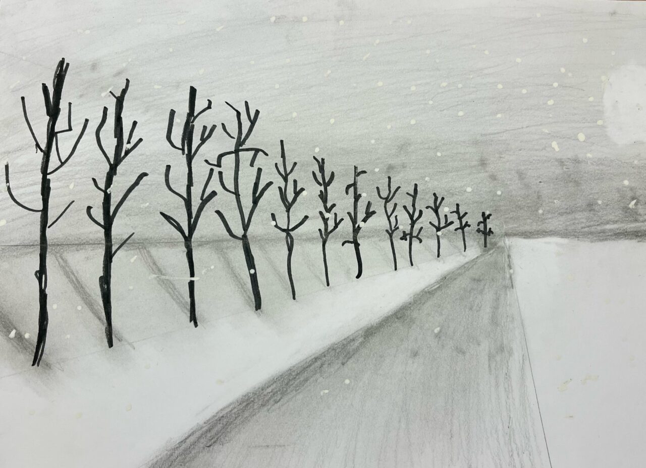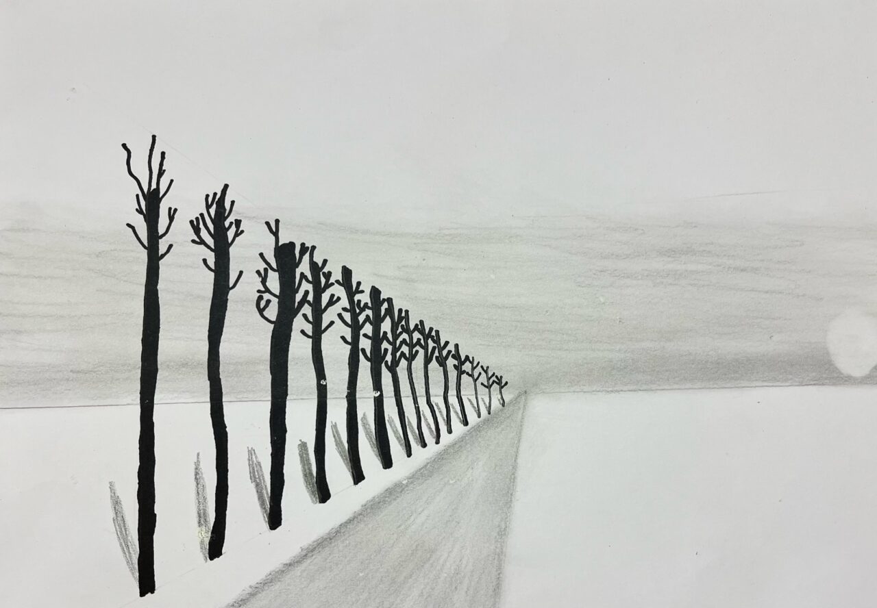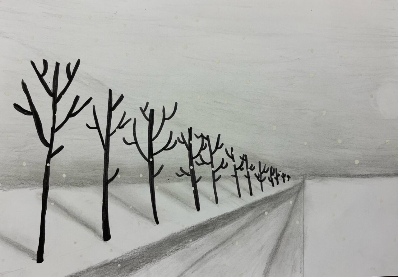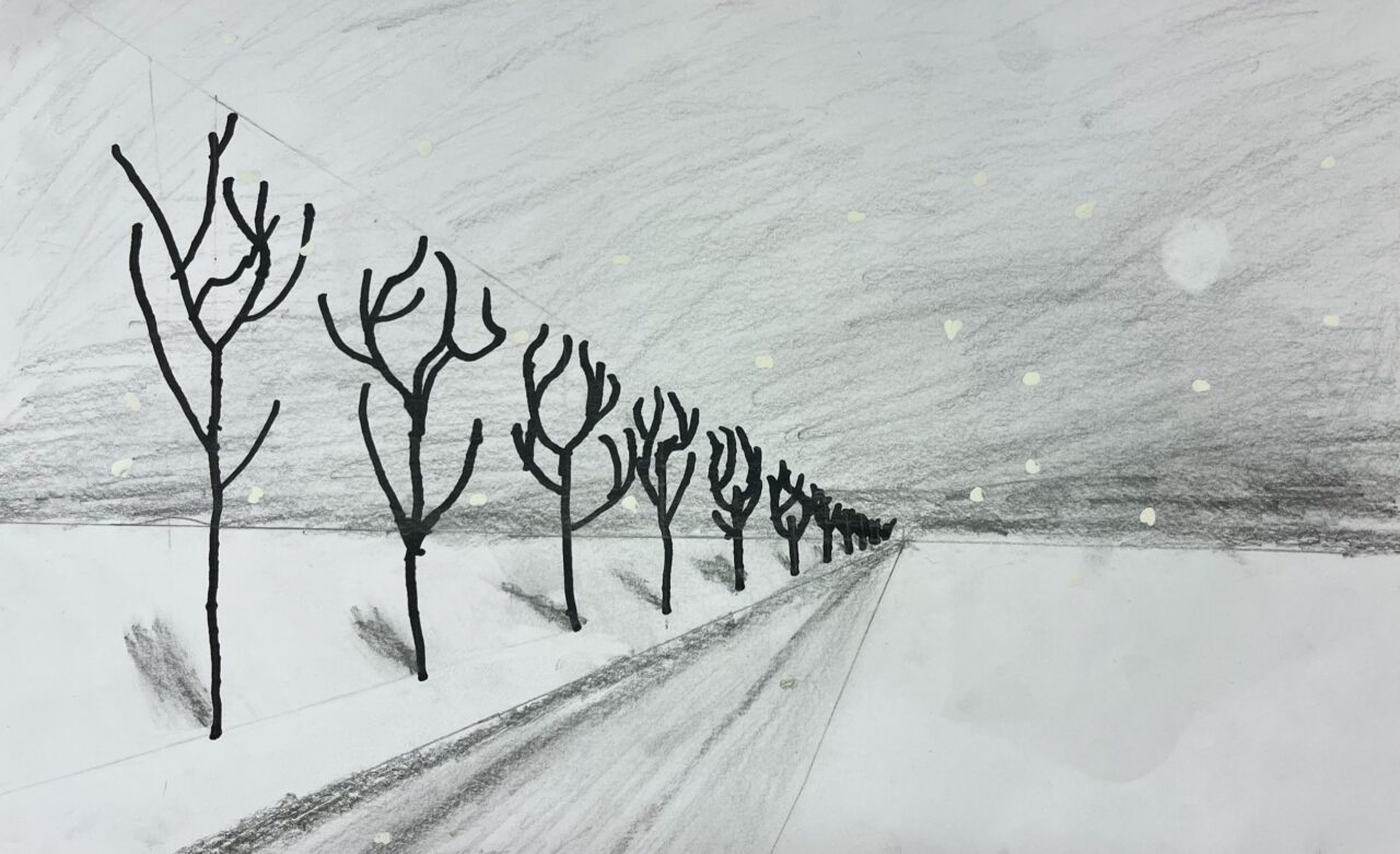 Katsetasime ühepunkti perspektiivis joonistamist.