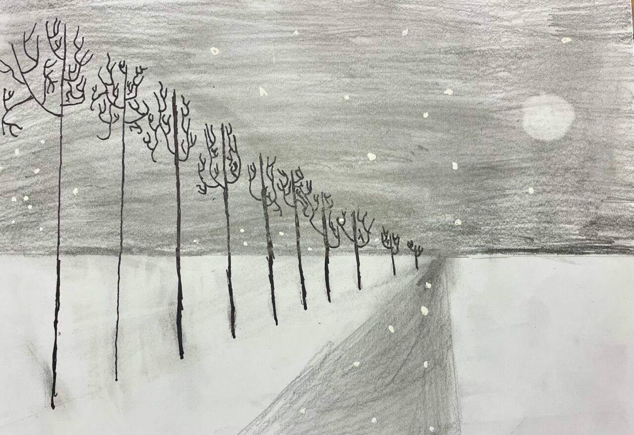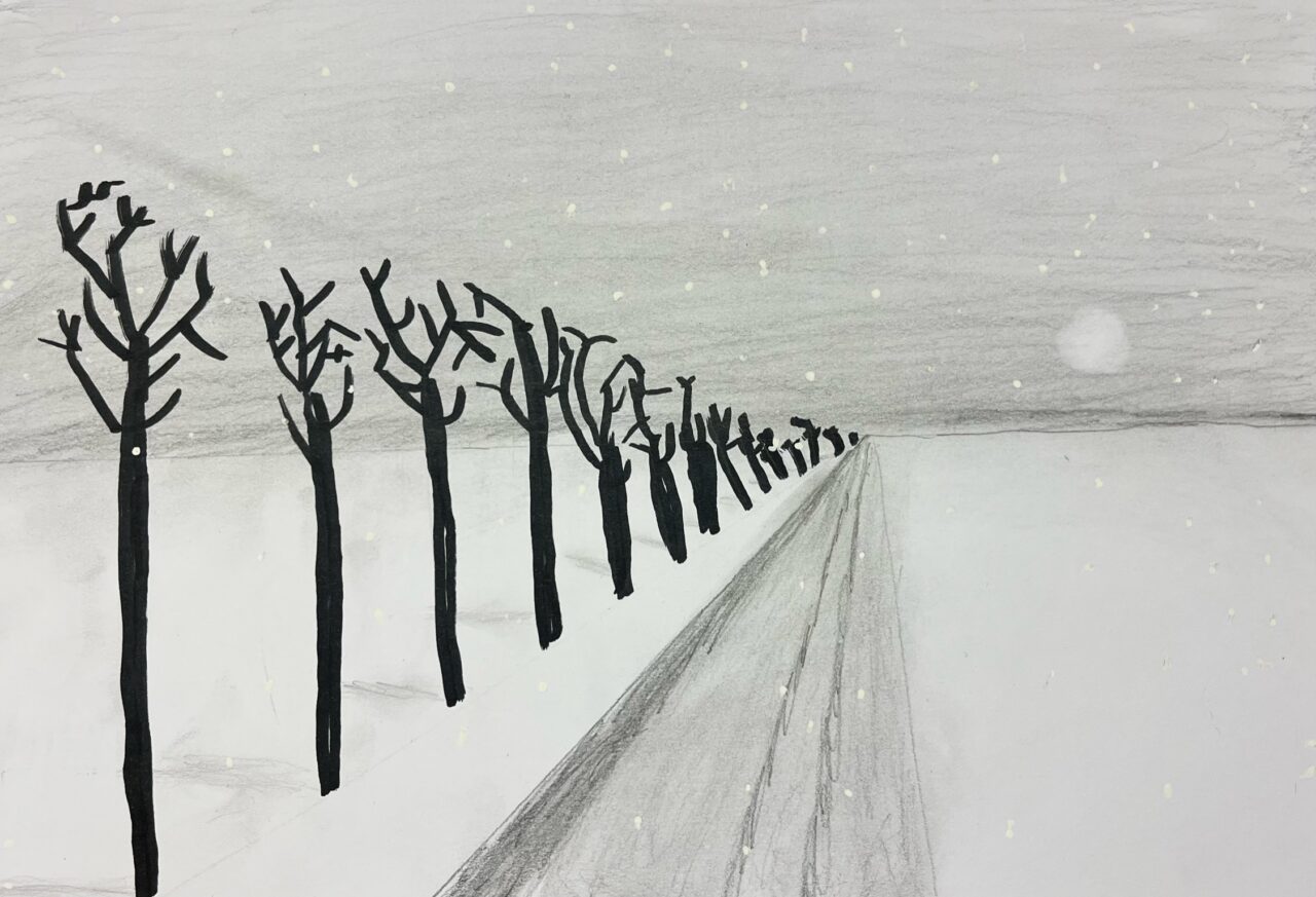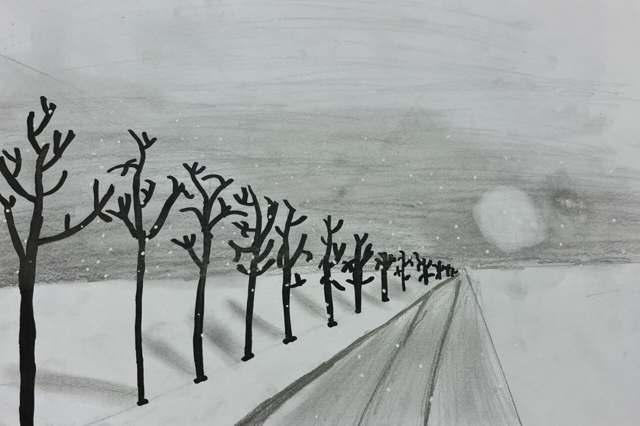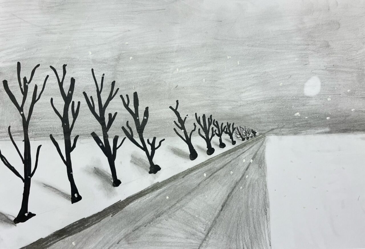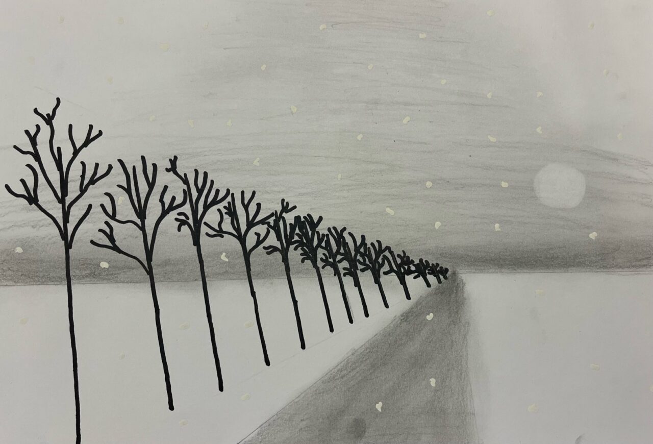 Katsetasime ühepunkti perspektiivis joonistamist.