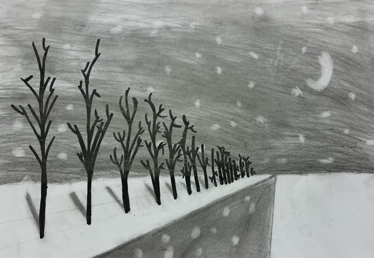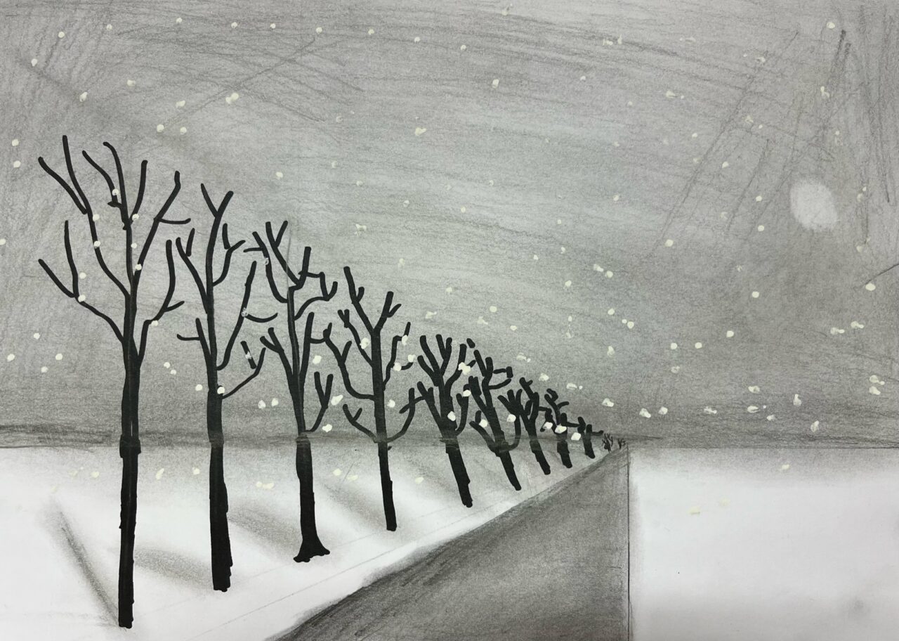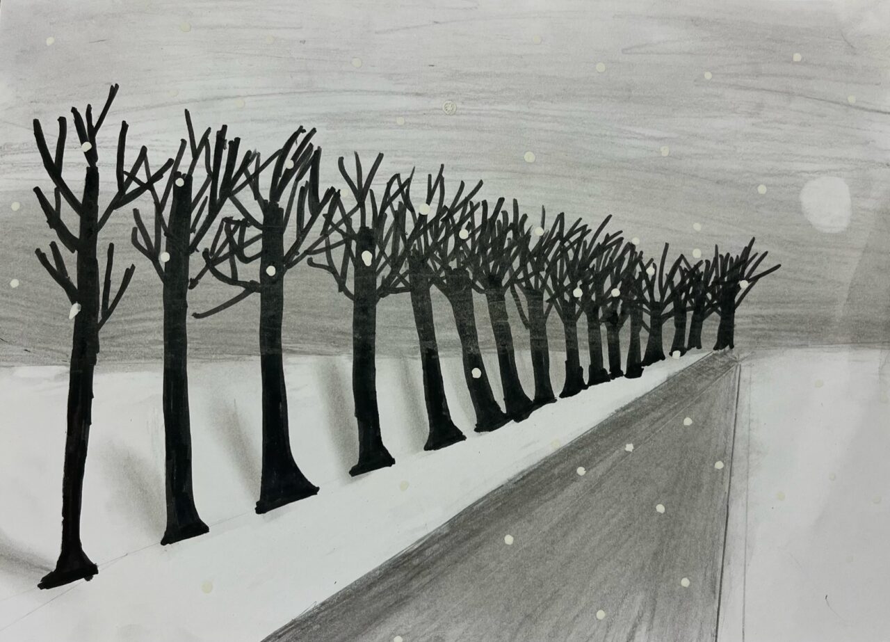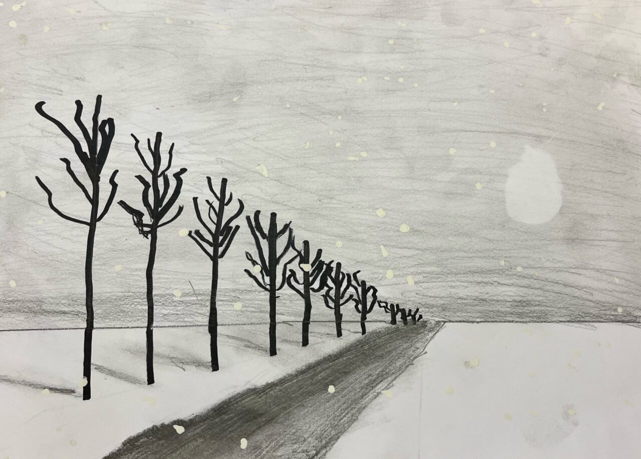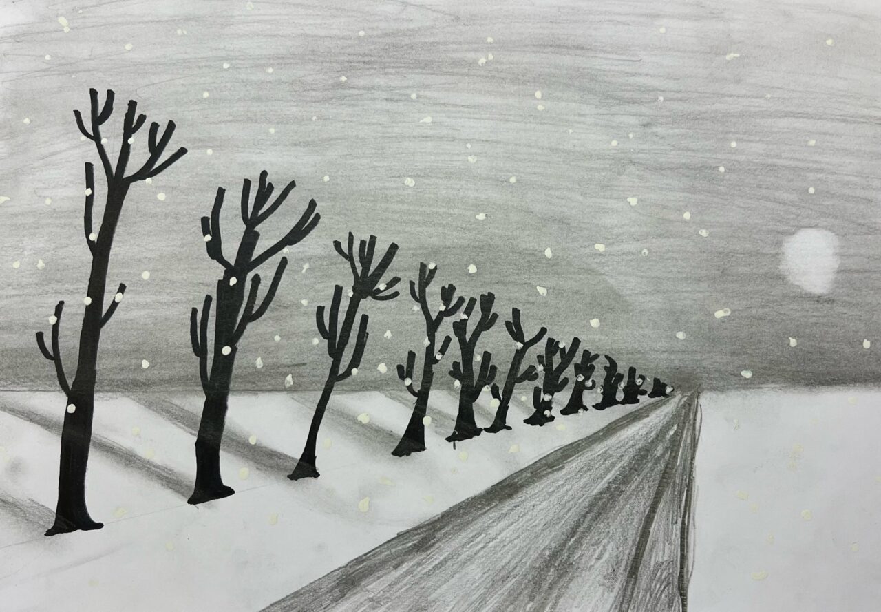 Katsetasime ühepunkti perspektiivis joonistamist.