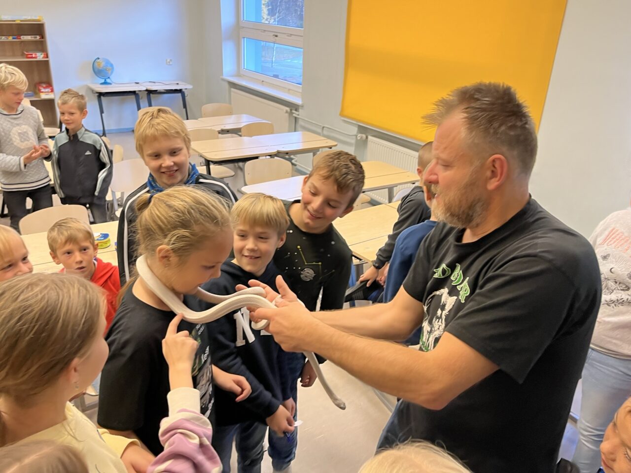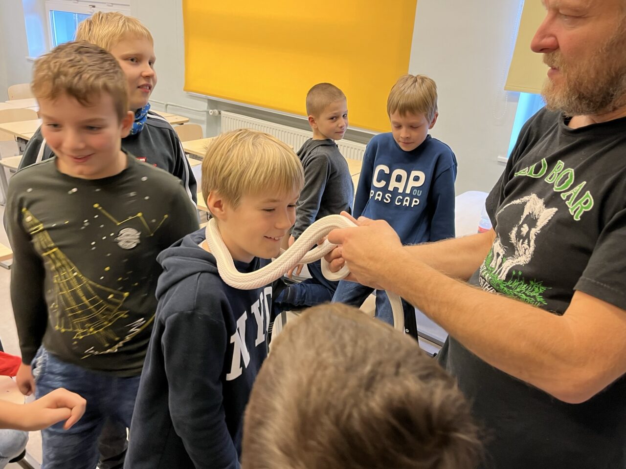Üks armas lemmikloom on iga lapse suureks unistuseks. Kuid milliseid kohustusi see endaga kaasa toob? Seda kõike uurisid täna lähemalt Saku Gümnaasiumi 3. klassid. Lemmikloomade pidamisest oli rääkima tulnud Darja Trohhatšova Põllumajandus- ja Toiduametist. Samuti saadi uusi põnevaid teadmisi erinevatest töötubades. Madude töötoas räägiti roomajatest, keda oli võimalik soovi korral paitada või isegi enda ümber hoida. Koerte töötoas ootas lapsi ees kohtumine Käpajuht Karli ja tema koeraga. Lisaks liikusid koolimajas ringi veel teenistuskoerad, kes olid tõepoolest väga nutikad ning panid lapsed imetlusest ahhetama. Interaktiivses töötoas katsuti ära arvata erinevaid koeratõuge. Vaheldust pakkus võimlas olev liikumise töötuba, kus tegevused olid jätkuvalt seotud loomadega. Päeva tipphetkeks kujunes aga koduste lemmikloomade saabumine lemmiklooma näitusele. Viimases tutvustati oma lemmikuid suure uhkusega. Täname südamest kõiki vanemaid, kes võtsid aja loomadega kohale tulla ning õpetajate ja lastega suhelda. Oli meeleolukas koolipäev!